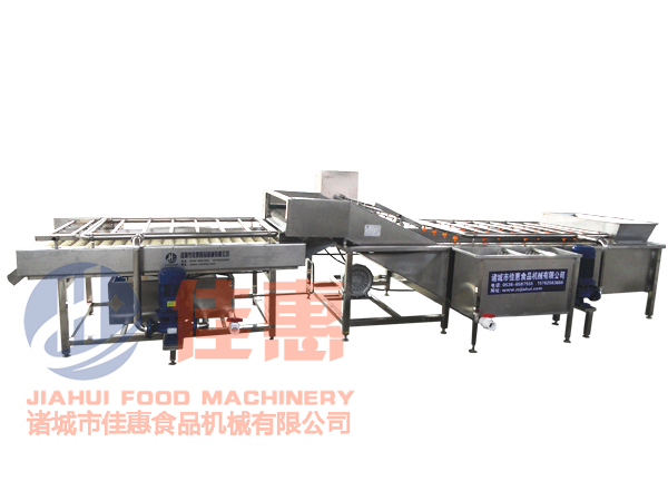 首先,需要清洗的大棗全部放入水槽,在高壓水流和強(qiáng)力氣泡的作用下,被充分打散、翻滾、清洗、傳送。設(shè)備上端配有高壓噴淋,產(chǎn)品在池中翻滾,再有高壓水沖擊,大棗表面的泥沙會(huì)脫落,通過(guò)網(wǎng)帶沉淀到底部隔離倉(cāng),。雜質(zhì)漂浮表面,通過(guò)溢水口溢出;細(xì)沙會(huì)經(jīng)過(guò)網(wǎng)帶沉淀到底部隔離倉(cāng),防止翻揚(yáng)回流造成再度污染,并且會(huì)經(jīng)過(guò)水循環(huán)過(guò)濾,在雜質(zhì)箱沉淀。物料在水中劇烈翻滾攪動(dòng),清洗水經(jīng)過(guò)過(guò)濾后,由循環(huán)水泵加壓通過(guò)噴嘴回沖,噴嘴方向可調(diào),物料被噴嘴噴出的高壓水得以再次沖洗,并朝著出口方向漂移。出口處為刮板提升機(jī),刮板提升機(jī)的速度可調(diào)(調(diào)節(jié)刮板提升機(jī)速度到所需的生產(chǎn)能力),將沖來(lái)的物料送至下道工序(可根據(jù)用戶要求在出口刮板提升機(jī)上加噴淋管,進(jìn)一步進(jìn)行噴洗)。 隨之大棗進(jìn)人高壓噴淋毛輥清洗機(jī),然后通過(guò)毛輥快速轉(zhuǎn)動(dòng)摩擦大棗表面,大棗隨之轉(zhuǎn)動(dòng)達(dá)到全方位清洗,同時(shí)產(chǎn)品上部噴水噴淋清洗,把產(chǎn)品表面污物、灰塵及纖維沖洗下來(lái)。 技術(shù)參數(shù):