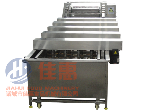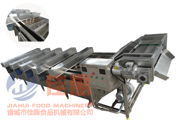 1、該設(shè)備為氣泡清洗機的改進設(shè)備,槽體上方加裝了橡膠攪拌裝置,目的是針對不同的清洗物料達到不同的清洗效果,特別是對玉螺菜(別稱螺絲菜、寶塔菜)等根須比較發(fā)達的根莖類蔬菜清洗效果顯著。