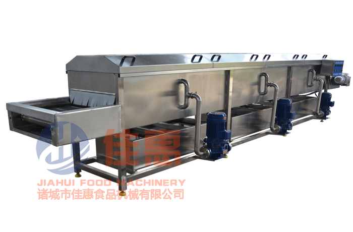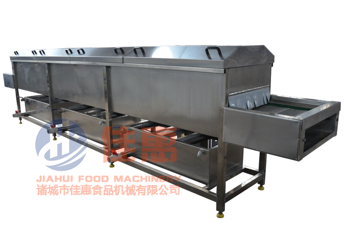 1、設(shè)備采用優(yōu)質(zhì)SUS304不銹鋼制作,符合國家食品出口標準。采用高壓噴淋清洗,清洗能力大、洗凈率高且不損傷物料,特別適合嬌嫩蔬果、雜質(zhì)多、難去除的食品清洗,可與篩板、網(wǎng)帶式氣泡清洗機組合使用。 2、隧道式高壓噴淋清洗機特別適合于大姜的清洗,在大姜清洗流水線中是不可缺少的一部分。大姜清洗流水線主要是由氣泡清洗段、高壓噴淋清洗段、成品挑選去雜段等組成,廣泛適用于國內(nèi)各生姜出口廠家。物科通過氣泡清洗段,刷洗生姜表面的大部分泥沙,自動提升到高壓清洗環(huán)節(jié),進行生姜的徹底清洗,噴淋段采取可調(diào)節(jié)噴頭,控制噴頭出水量,更好的保護生姜表皮,達到產(chǎn)品出口要求。 設(shè)備示意圖:
